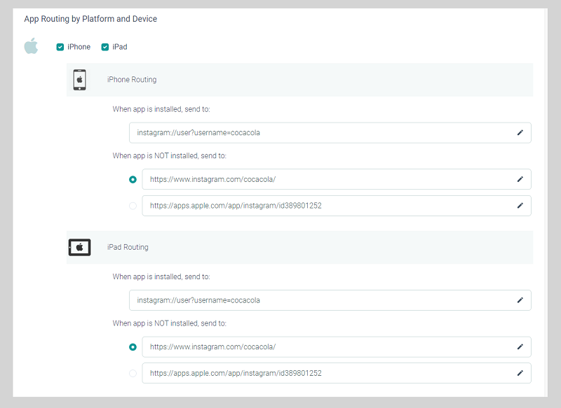 Marketers have the power to control this setting with platforms like URLgenius. By simply opening the settings page for the link, you can easily change the fallback destination by platform and device. And the best part? URLgenius QR codes are dynamic, meaning you can make changes to the fallback setting at any time, even after the QR code has been printed and distributed. This gives you the flexibility to adjust your QR code strategy as your campaign goals evolve.