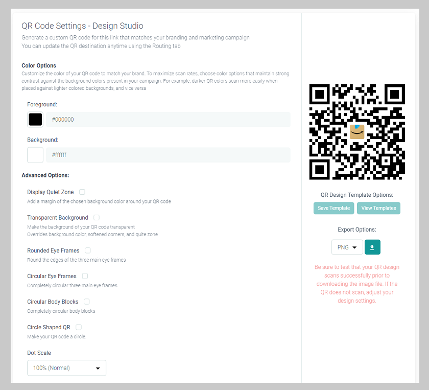 - Changes must be made cautiously because design elements affect the ability to scan the code. Contact us for guidance!